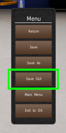 GUIの位置を自動保存の設定を使用して、ウィンドウの位置とサイズを自動的に保存するように設定することもできます。この設定は、ゲーム内のオプションメニューにあります。このメニューは、オフィスのゲームメニューにあります。ファイルキャビネットをクリックするか、トップバーからメニューボタンをクリックするか、オフィスにいる間にESCボタンを押します。