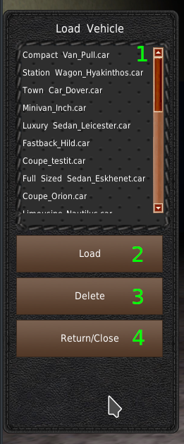 もし、このメニューでの作業が完了して、同じ車両の編集を続けたい場合は、リスト(#2)からベース車両ボディをクリックしないでください。その車両が読み込まれてしまい、作業内容が失われてしまいます。代わりに既存のボディを修正(#4)をクリックしてください。