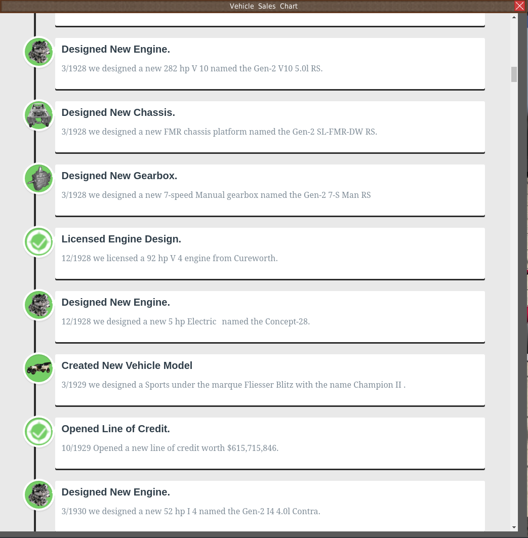 The Showroom allows you to review your past vehicles and components. You can also browse your company's timeline or compare models of other companies.