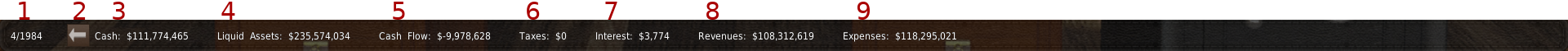 The Funding bar displays information about your money and how much is flowing in and out of your company.