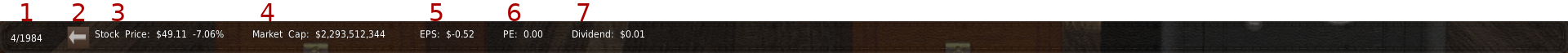 The bottom bar appears in every room after you load or start a save game. The information presented in the bottom bar is the same for every room. But the information in the bar depends on the pixel width of the game's window.