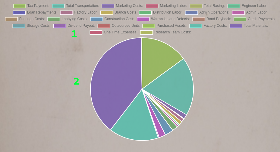 | Total Factory Costs | This value is all your factory, production line, labor, and material costs. It is the total cost for operating your factories and what comes out of them. |