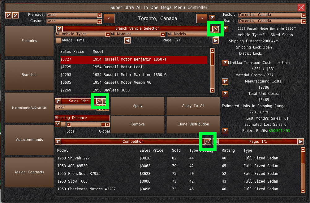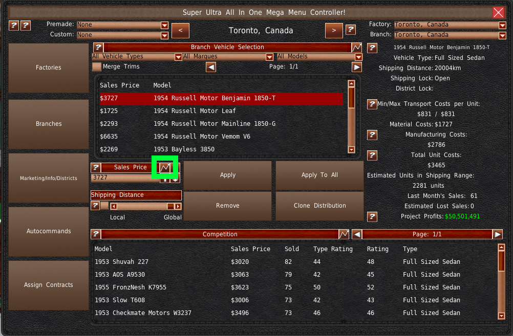 所得分布とバイヤーの評価表は、このゲームで最も重要なレポートの1つです。このレポートの動的レポートボタンは、支店物流システムで車両の販売価格を入力する場所の横にあります。これはワールドマップの支店システムとメガメニューの両方にあります。