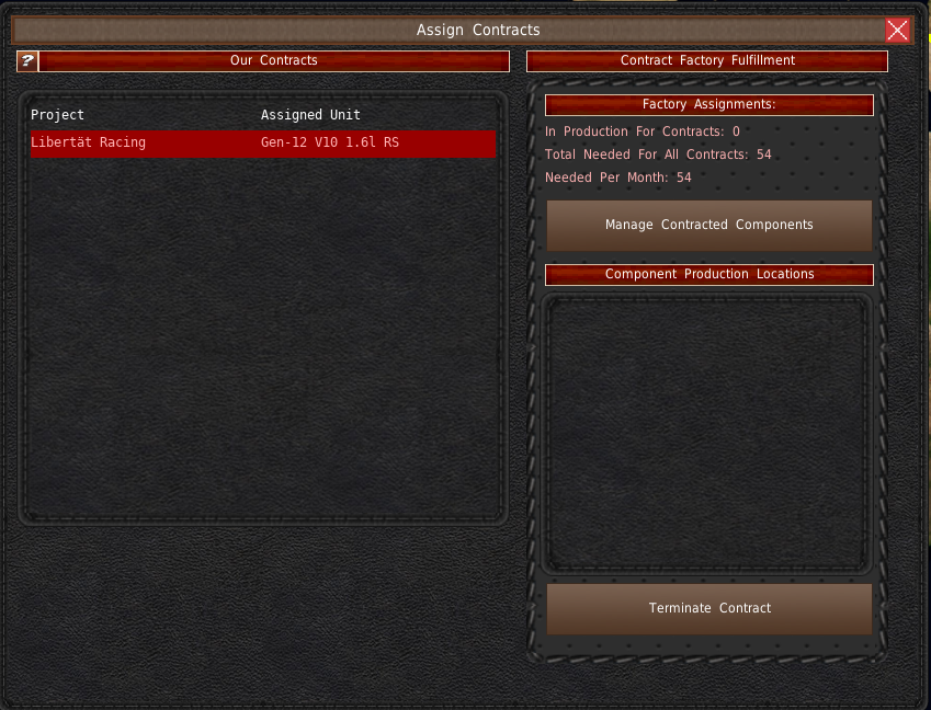 工場にコンポーネント契約を割り当てるには、契約割り当てシステムを使用する必要があります。このシステムには、トップメニューの「契約」ボタンをクリックすることでアクセスできます。