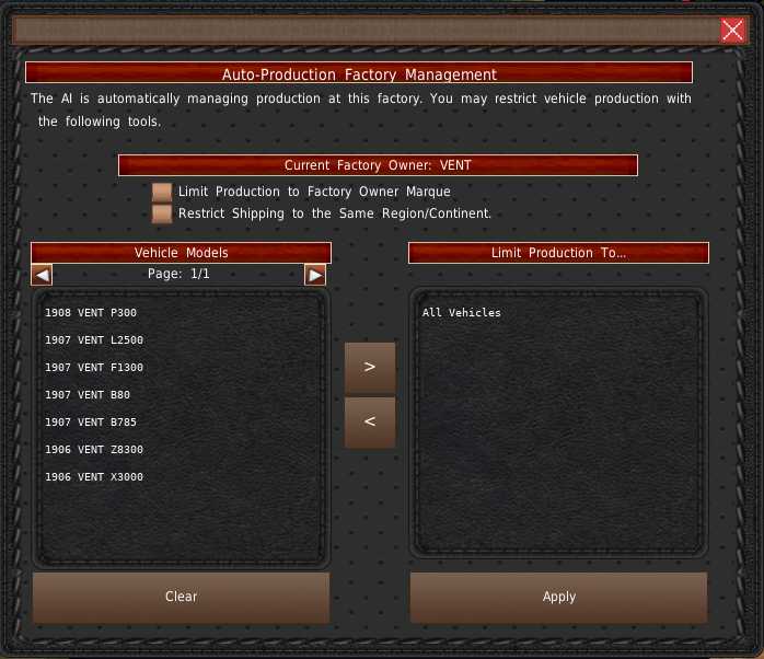 一番上には新しい工場が持つ生産ラインの数(#1)が表示されています。そのすぐ下には、ここで製造の値が40の車両を生産できる総台数の試算が表示されています。