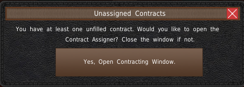 契約成立おめでとうございます。コンポーネントの契約を獲得し、そのコンポーネントが生産ラインに割り当てられておらず、自動生産が有効でない場合、ゲームは警告ウィンドウをポップアップ表示します。