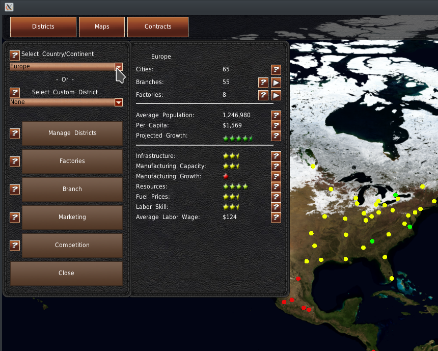ワールドマップには、完全な地域システムがあります。ただし、メガメニューでは、支店出の荷と工場生産に関する限られた機能しかありません。