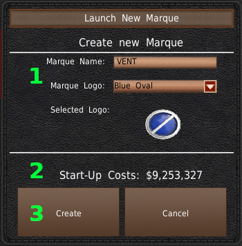 ここで、新しいブランドに関する情報を入力する必要があります。名前を入力し、一番上のロゴを選択する必要があります(#1)。会社を設立するよりは安価にブランドを設立することができますが、それでも費用はかかります。そのスタートアップ費用は、中段にあります(#2)。最後に、ブランドを作成するには、「作成」ボタンをクリックします(#3)。