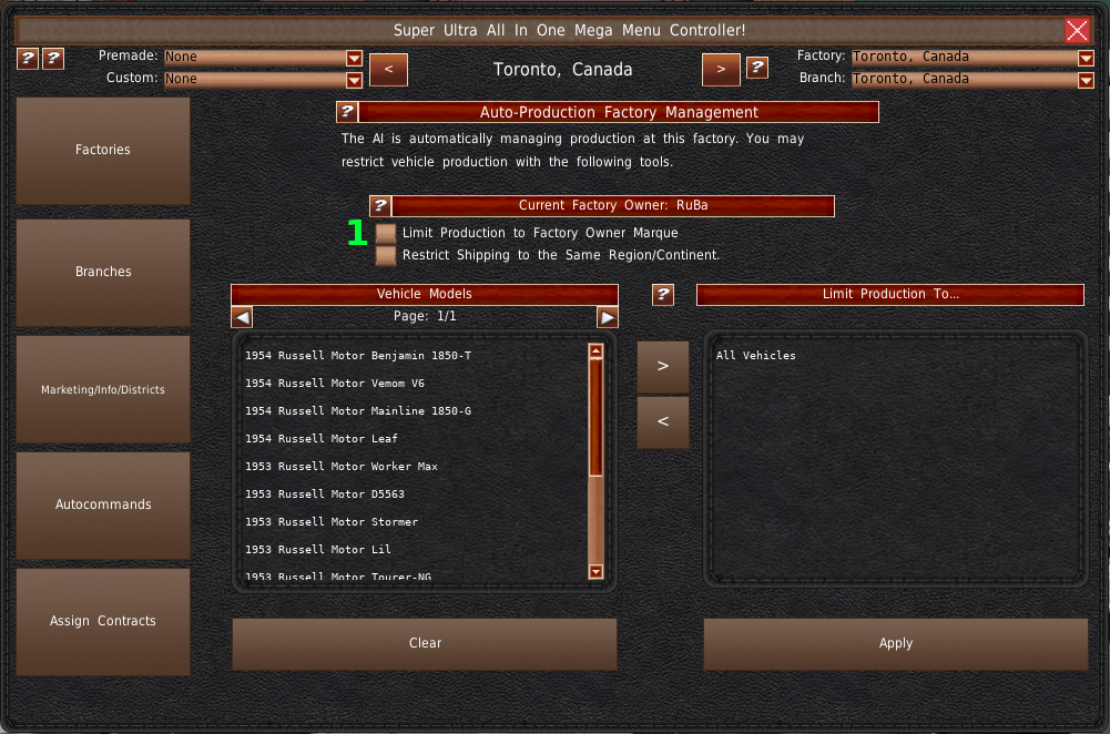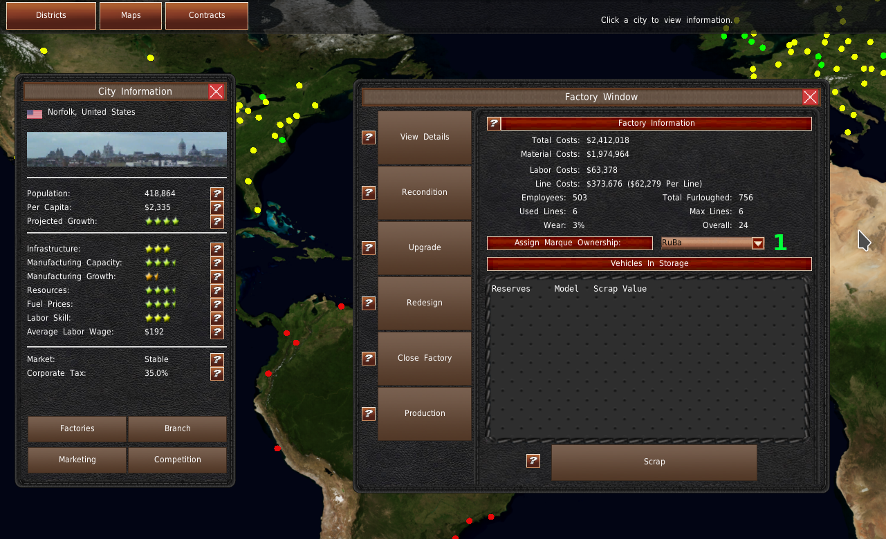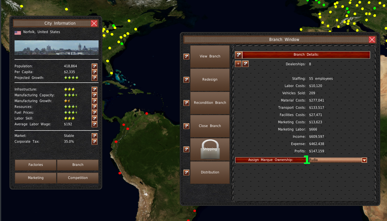 ブランドには、工場や支店の所有権を割り当てることもできます。これはブランドの売却価値を高め、会社をスピンオフさせる際に重要な要素となります。工場の所有権は自動生産の設定で、あるブランドのモデルの生産をそのブランドが所有する工場だけに限定するために使用することができるファクターです。
