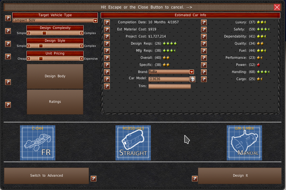 両を設計する際に最も重要な評価は、ユニットコスト(単価)です。この変数は、利益率に影響を与えたり、競合他社を下回ることを可能にします。しかし、ユニットコストよりも目立たないのが、車両の評価そのものです。すべてのカテゴリーで可能な限り高い評価を得れば最高の車両を作ることができますが、その分、車両が高くなりすぎる可能性があります。これは、特に低富裕層向けの車種に当てはまります。