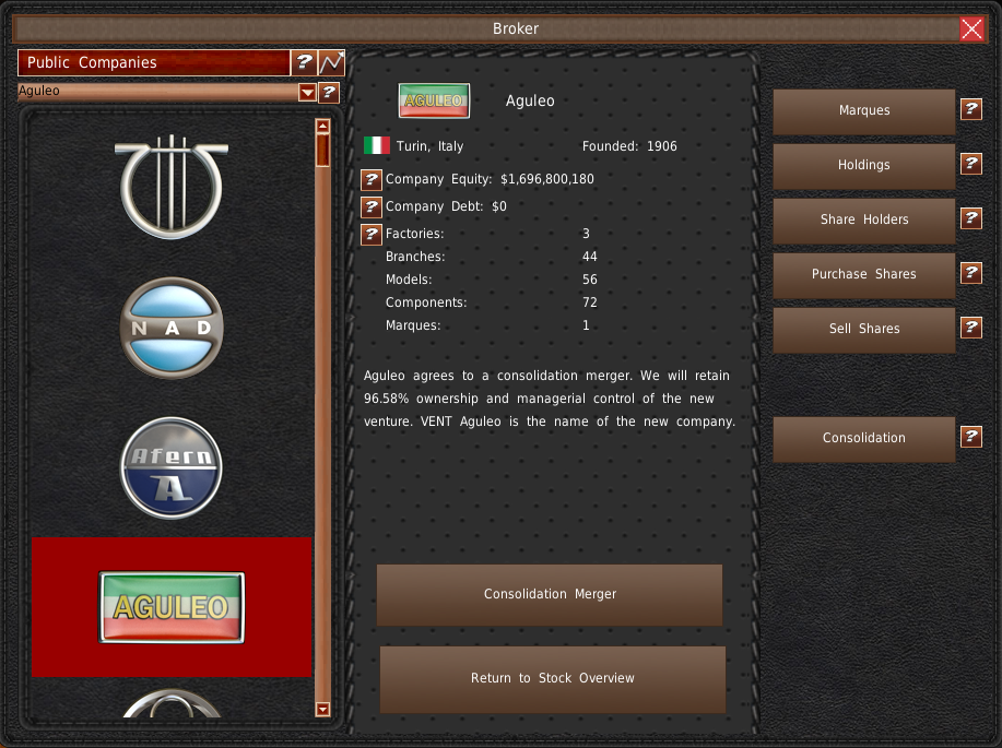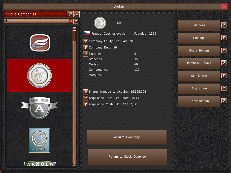 会社を買収することは、会社を拡大し、競合を減らすのに最適な方法です。金融のページでGUIの使い方をカバーしています。ここでは、買収を承認してもらう方法について説明します。また、買収後に何が起こるかも説明します。