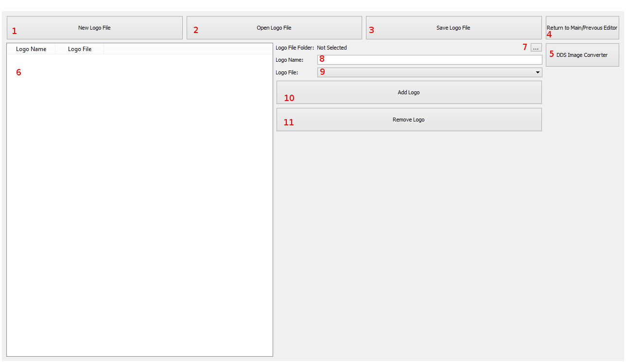 ゲームはzipファイルからDDSファイルを読み込みます。しかし、プレイヤーロゴエディター(およびすべてのMODツール)はzipファイルからDDSファイルを読み込むことができません。そのため、プレイヤーロゴエディターが読み込めるように、必要なロゴをすべてフォルダに入れる必要があります。その後、ゲーム内でロゴを使用する準備ができたら、すべてのロゴのDDSファイルをMOD用のMiscellaneous Artwork zipか、MODを作成していない場合はゲーム用のデフォルトLogosフォルダ内のLogos.zipファイルに直接入れる必要があります。