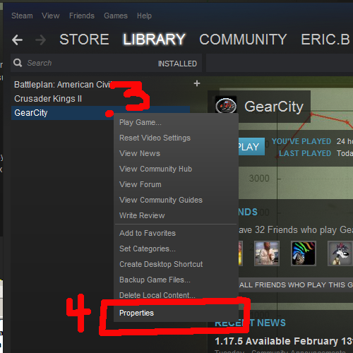 - リスト内の 「GearCity」を右クリックします。 Click for Step 3 image.