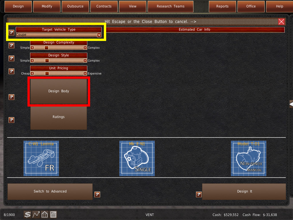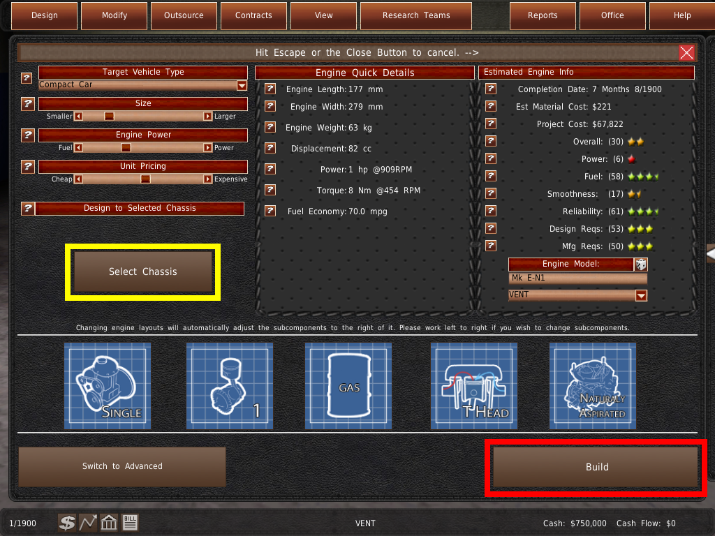 9. GearCity には、コンポーネントや車両を設計するために、より詳細なアドバンスドデザイナーと、簡単に操作できるアシストデザイナーの 2 つの方法が実装されています。