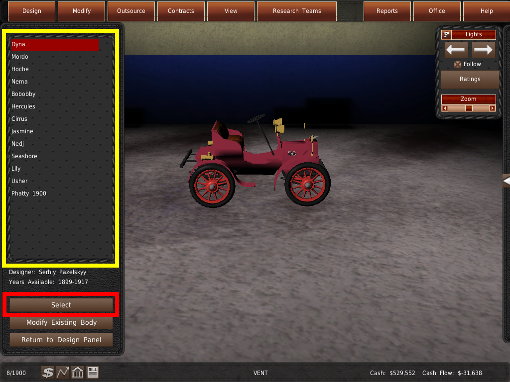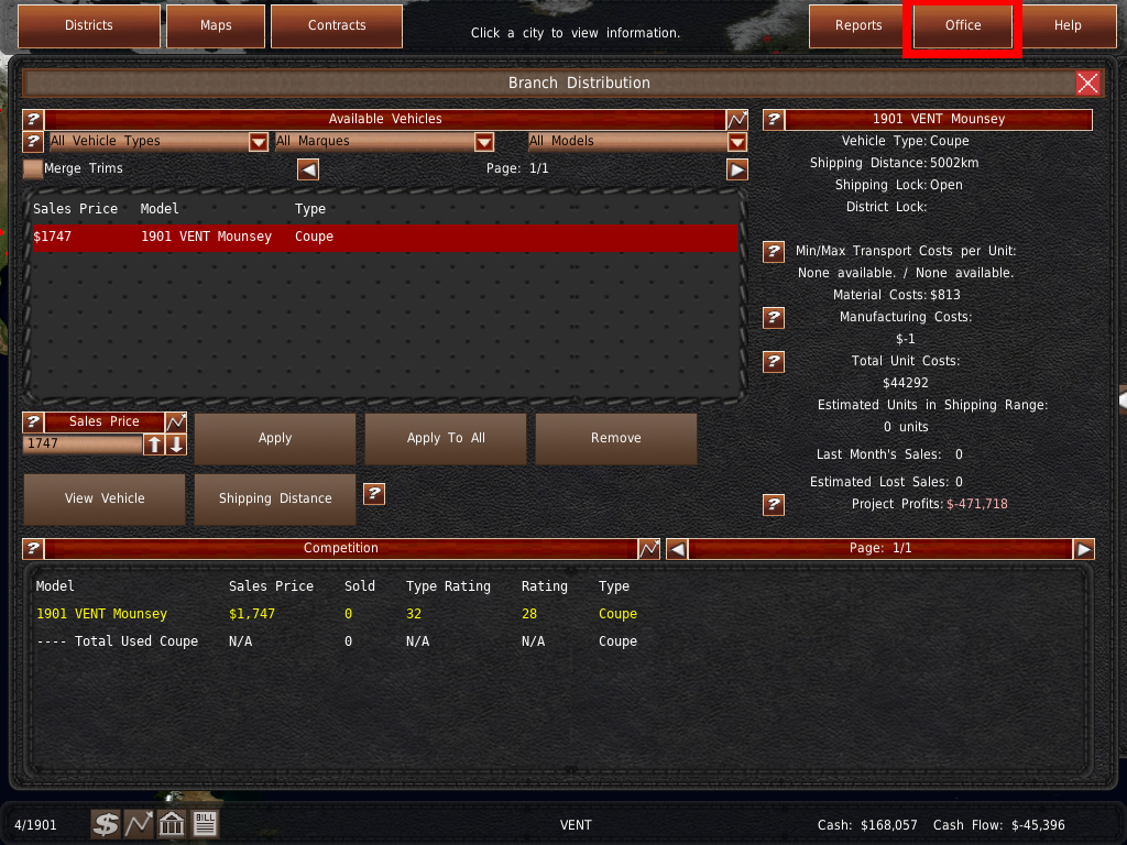 36. これで車に販売価格が設定されました。赤く光るオフィスボタンをクリックして、オフィスに戻ります。