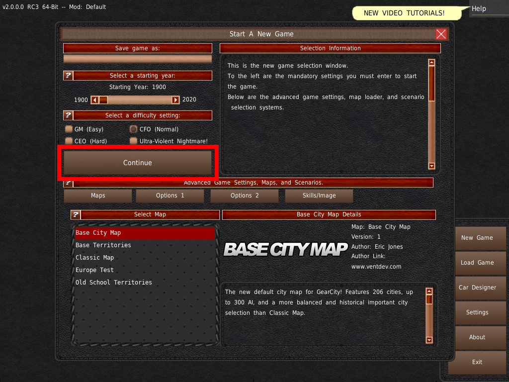 初めてプレイされる方は、1950年から1980年までの後期ゲームと、難易度イージーを選択されることをお勧めします。