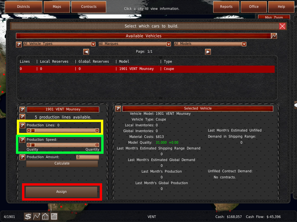 リストから車両をクリックして、1つの工場ラインに割り当てます。生産速度スライダーが半分になっていることを確認してください。割り当てが完了したら、赤く光る割り当てボタンをクリックして変更を保存します。